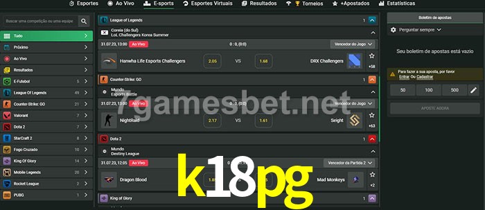 O k18pg oferece uma grande seleção de opções de apostas em e-sports com probabilidades competitivas